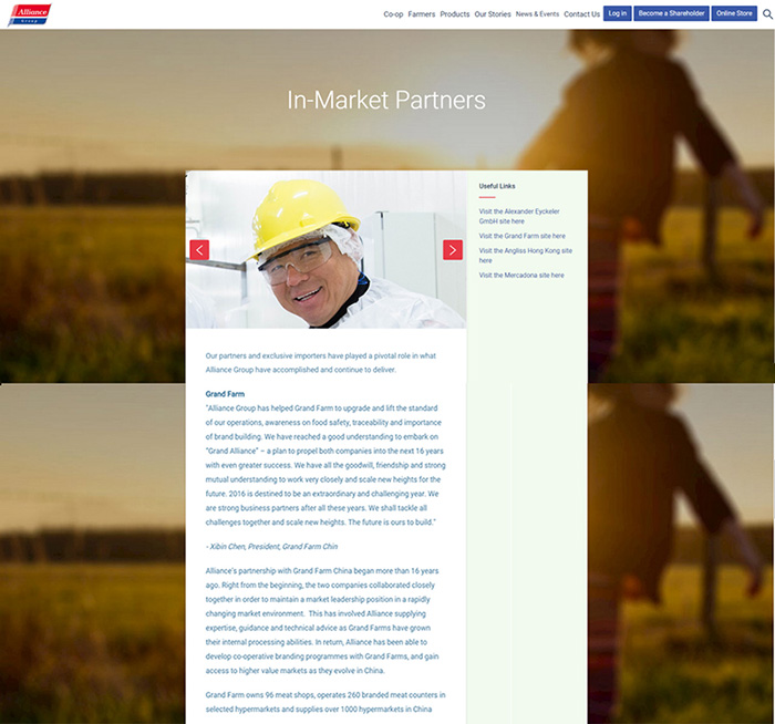 Alliance’s partnership with Grand Farm China began more than 16 years ago. Right from the beginning, the two companies collaborated closely together in order to maintain a market leadership position in a rapidly changing market environment. This has involved Alliance supplying expertise, guidance and technical advice as Grand Farms have grown their internal processing abilities. In return, Alliance has been able to develop co-operative branding programmes with Grand Farms, and gain access to higher value markets as they evolve in China.
