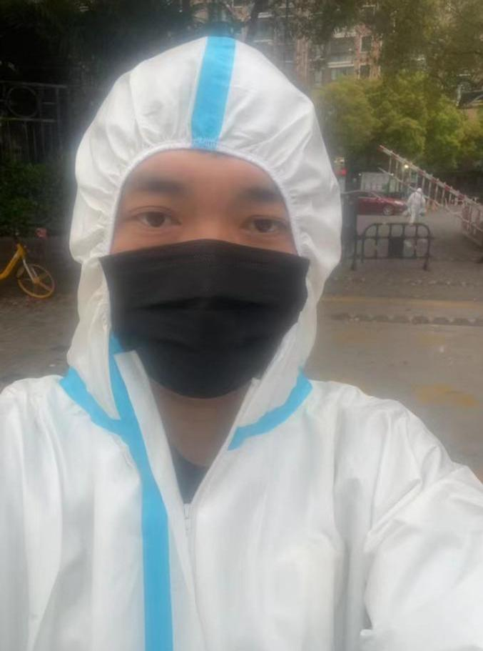 4月2日,因配送員緊缺,唐曉峰作為行政經(jīng)理,勇敢站出來,投身加入到配送員的隊伍中。由于配送區(qū)域多、路程遠,為了節(jié)約去廁所的時間,水都很少喝,吃飯也因為封控難以解決。即使是這樣,他仍舊懷著為百姓服務(wù)的炙熱之心,克服重重困難。
