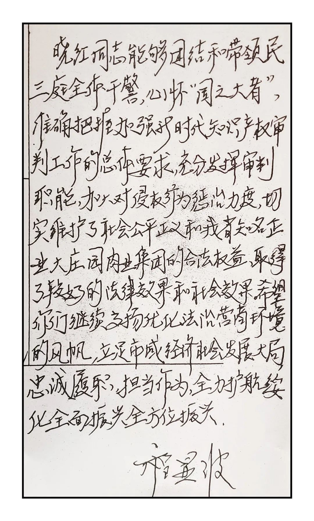 “我們懷著誠(chéng)摯和激動(dòng)的心情,向綏化市中級(jí)人民法院民三庭的各位法官贈(zèng)送錦旗并送上《感謝信》,真誠(chéng)表達(dá)我公司對(duì)綏化市中級(jí)人民法院民三庭各位法官公正廉明、認(rèn)真負(fù)責(zé)的敬業(yè)精神和工作態(tài)度表示衷心的感謝和崇高的敬意!”近日,綏化市中級(jí)人民法院院長(zhǎng)收到一封發(fā)自大莊園肉業(yè)集團(tuán)股份有限公司的感謝信,信件字里行間洋溢著企業(yè)對(duì)法院的感謝之情。