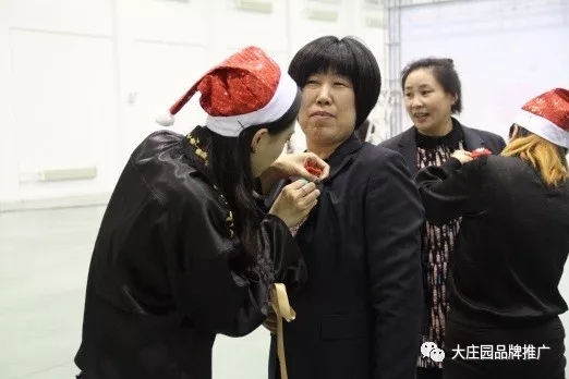 工作人員為邱麗霞總經(jīng)理佩戴節(jié)日標志